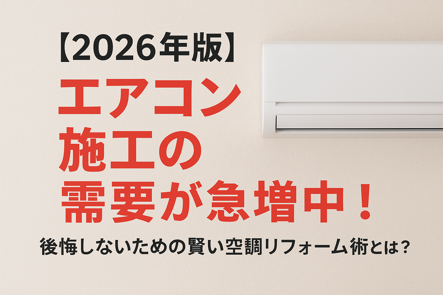 特に2026年以降は、省エネ性能の高い最新モデルの普及 や リフォーム需要の増加 により、エアコンの取り替え・新設工事が例年以上に増えると予想されています。