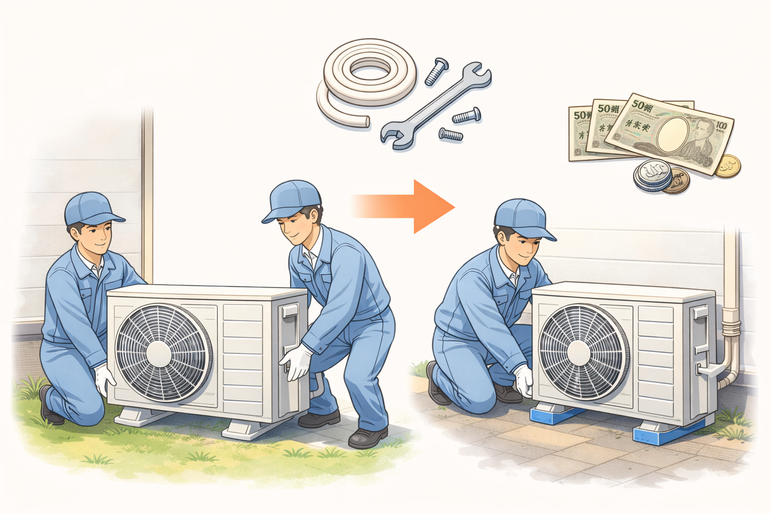 本記事では、「エアコン 室外機 移動費」「室外機 移設 費用 相場」などの検索ニーズに対応しながら、費用目安・工事内容・注意点をわかりやすく解説します。