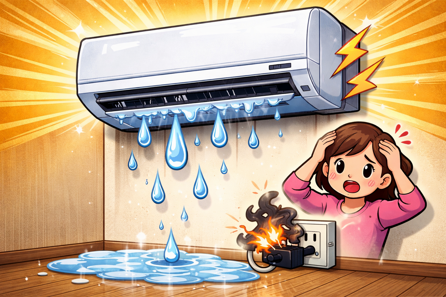 「エアコンから水がポタポタ垂れてくる」「床や壁が濡れている」