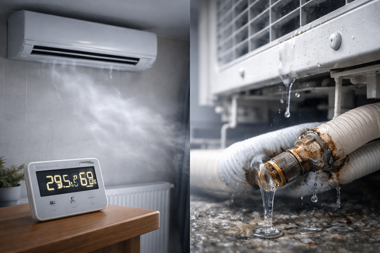 もっとも分かりやすい症状です。設定温度を下げても部屋が冷えない場合、冷媒不足が疑われます。