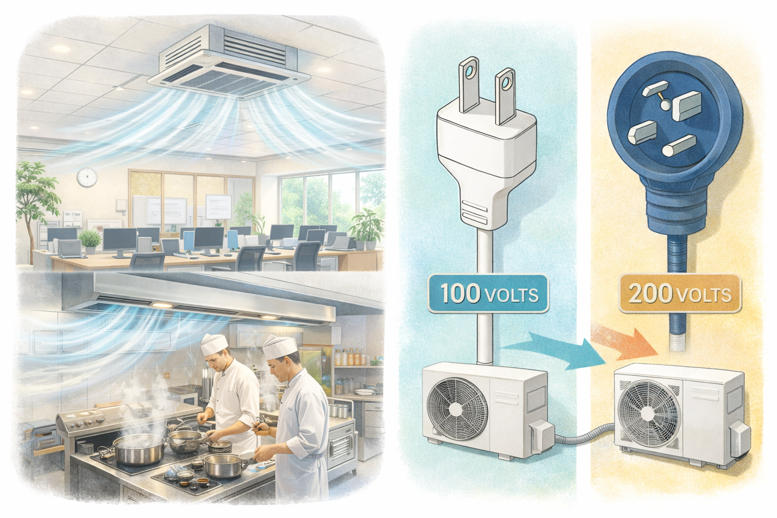 動力エアコンは業務用・大型空間向けに設計されています。