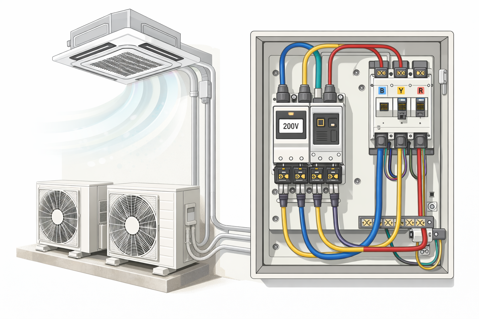 本記事では「動力エアコンとは」「三相200V エアコン」「業務用エアコン 電源」などのSEOキーワードを意識しながら、動力エアコンの基礎知識から導入時の注意点までわかりやすく解説します。