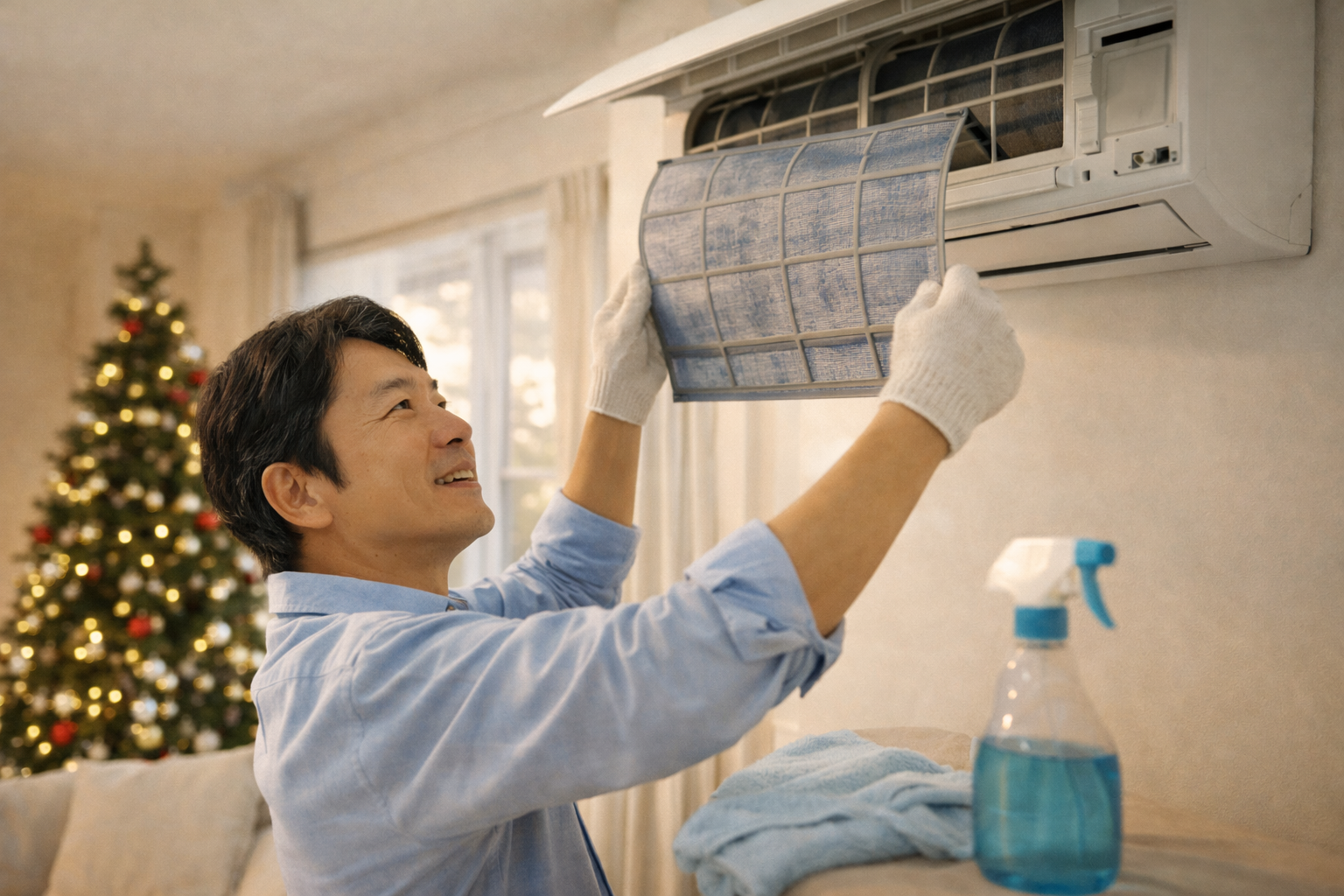 年末が近づくと、キッチン・お風呂・窓まわりなど、大掃除の計画で頭がいっぱいになりますよね。その中で、意外と忘れられがちなのがエアコン掃除です。