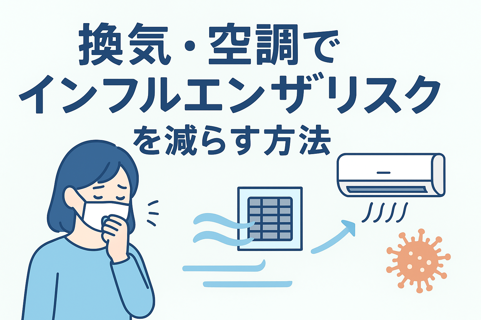 実は、エアコンや換気システムの使い方を工夫するだけで、インフルエンザ感染リスクを大幅に減らすことができます。