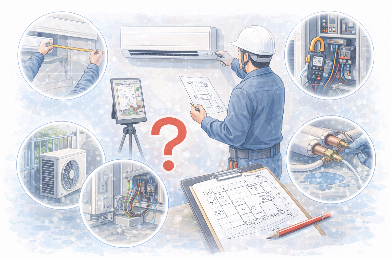 エアコン・空調工事の成功は、施工当日ではなく現場調査の段階でほぼ決まります。