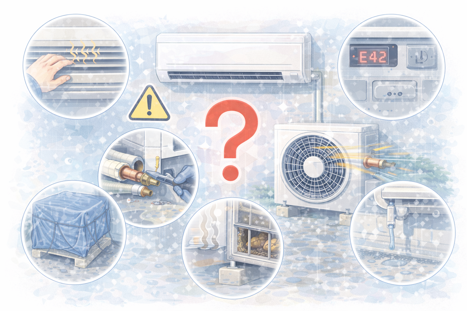 本記事では、空調が止まる前に出る代表的なサイン、原因、対処法、早期点検の重要性について詳しく解説します。家庭用エアコンから業務用空調まで対応できる内容です。