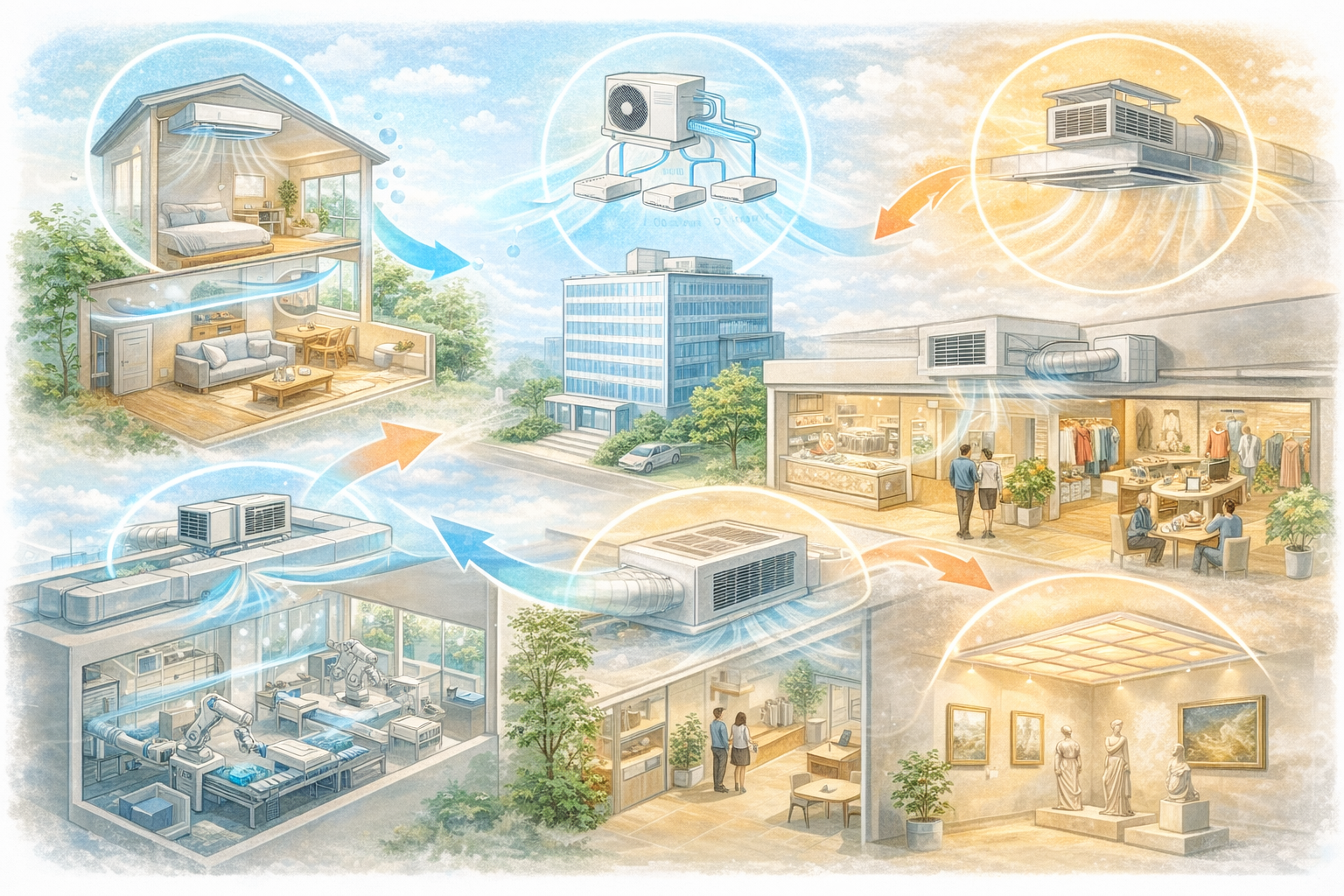 空調方式は、住宅・オフィス・店舗・工場など用途によって最適解が異なり、選び方を間違えると「効きが悪い」「電気代が高い」「メンテナンスが大変」といった問題につながります。